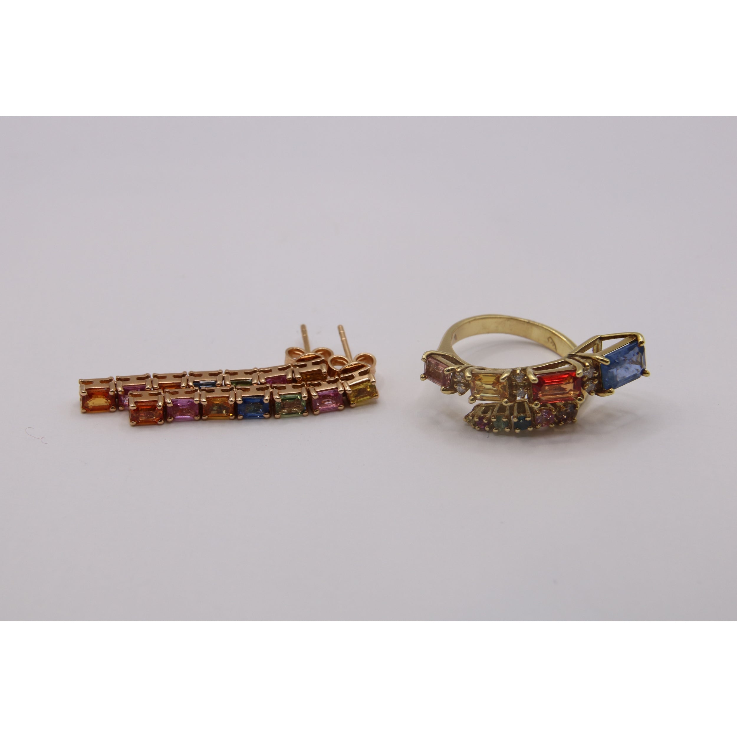 Set Anello e Orecchini Zaffiri Colorati , Diamanti e Oro Giallo 18kt