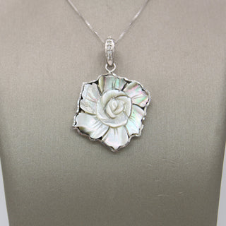 Handcrafted Mother-of-Pearl Cameo Pendant – Flower Design in Rhodium-Plated Sterling Silver 925