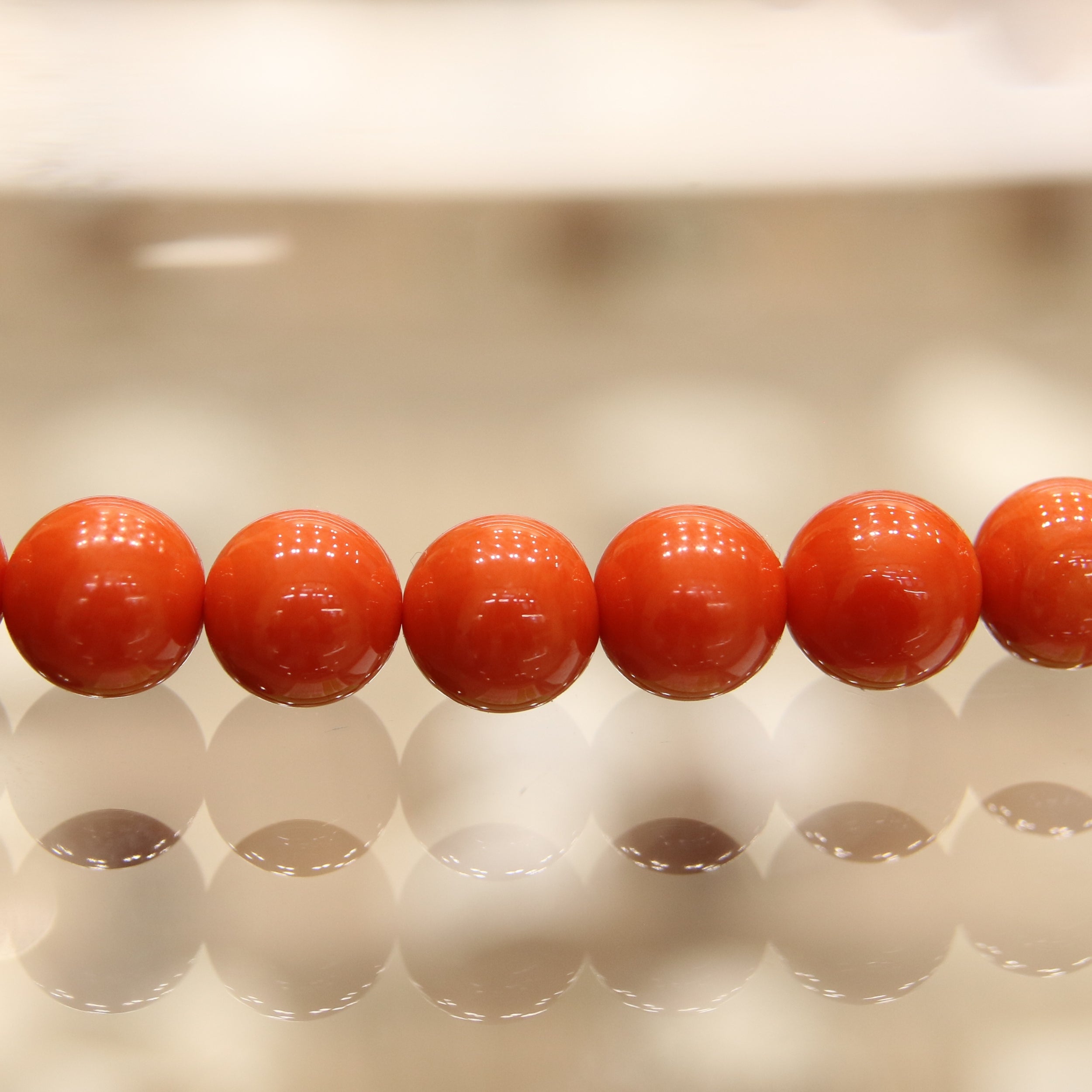 Each coral bead is carefully selected for uniform color and flawless polish.