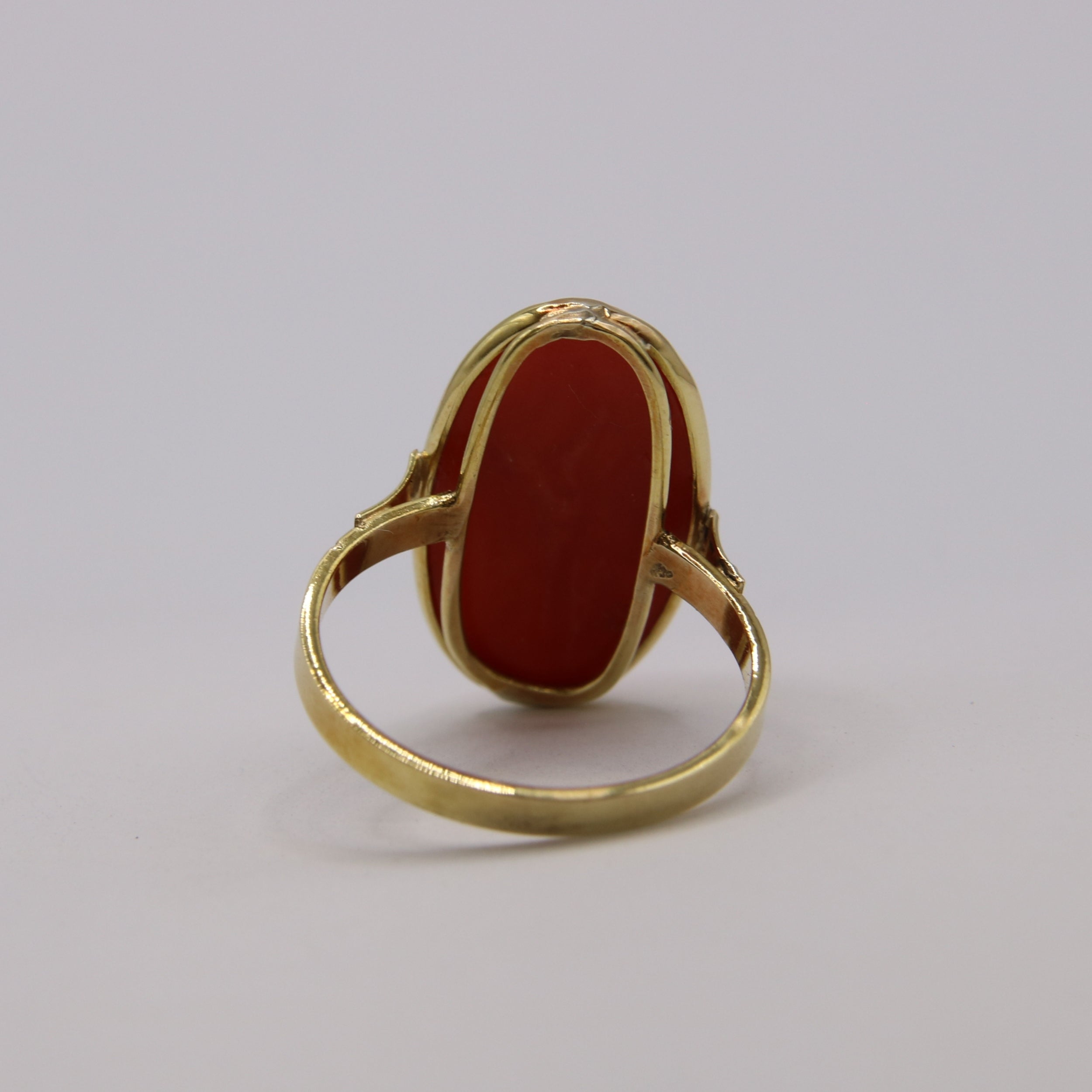 18kt yellow gold ring with natural red coral