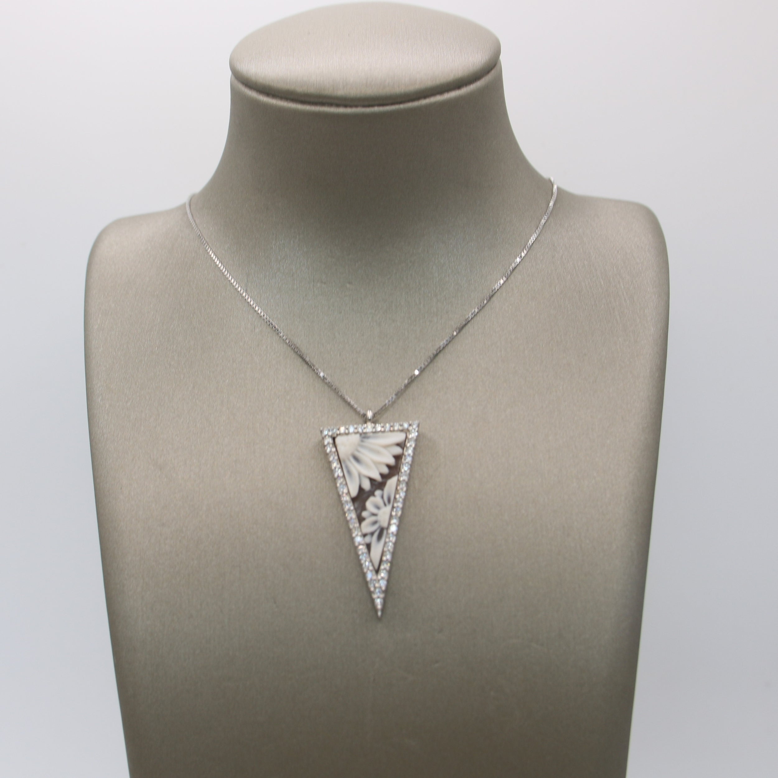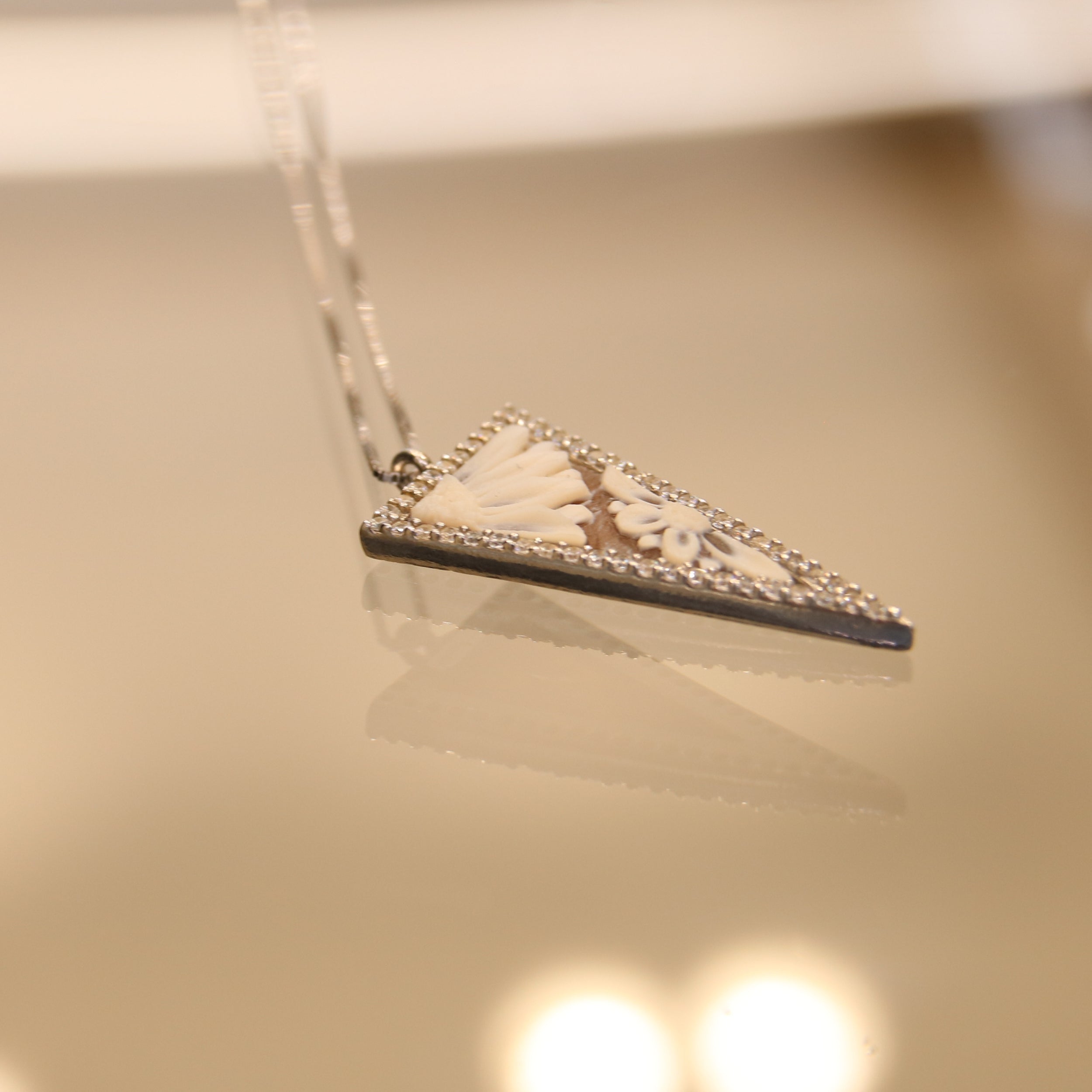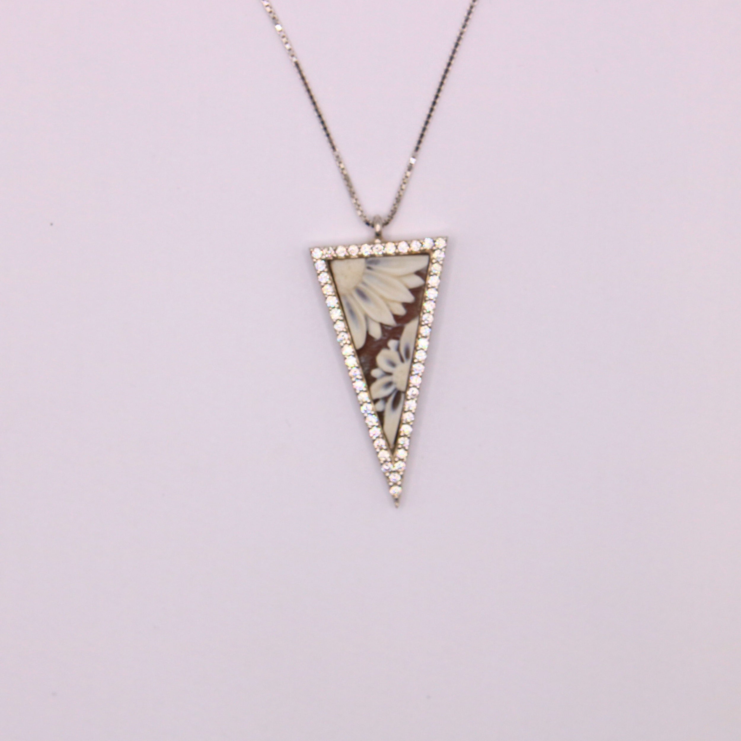 Triangular Flower Cameo Pendant in White Sterling Silver 925 – Handmade