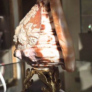 Découvrez notre coquille cornée sculptée à la main, équipée d'une lampe interne qui crée une atmosphère chaleureuse et évocatrice.