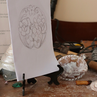 Les artisans sculptent le camée pour créer des images en relief, tandis que le corail est soigneusement façonné et fini.
