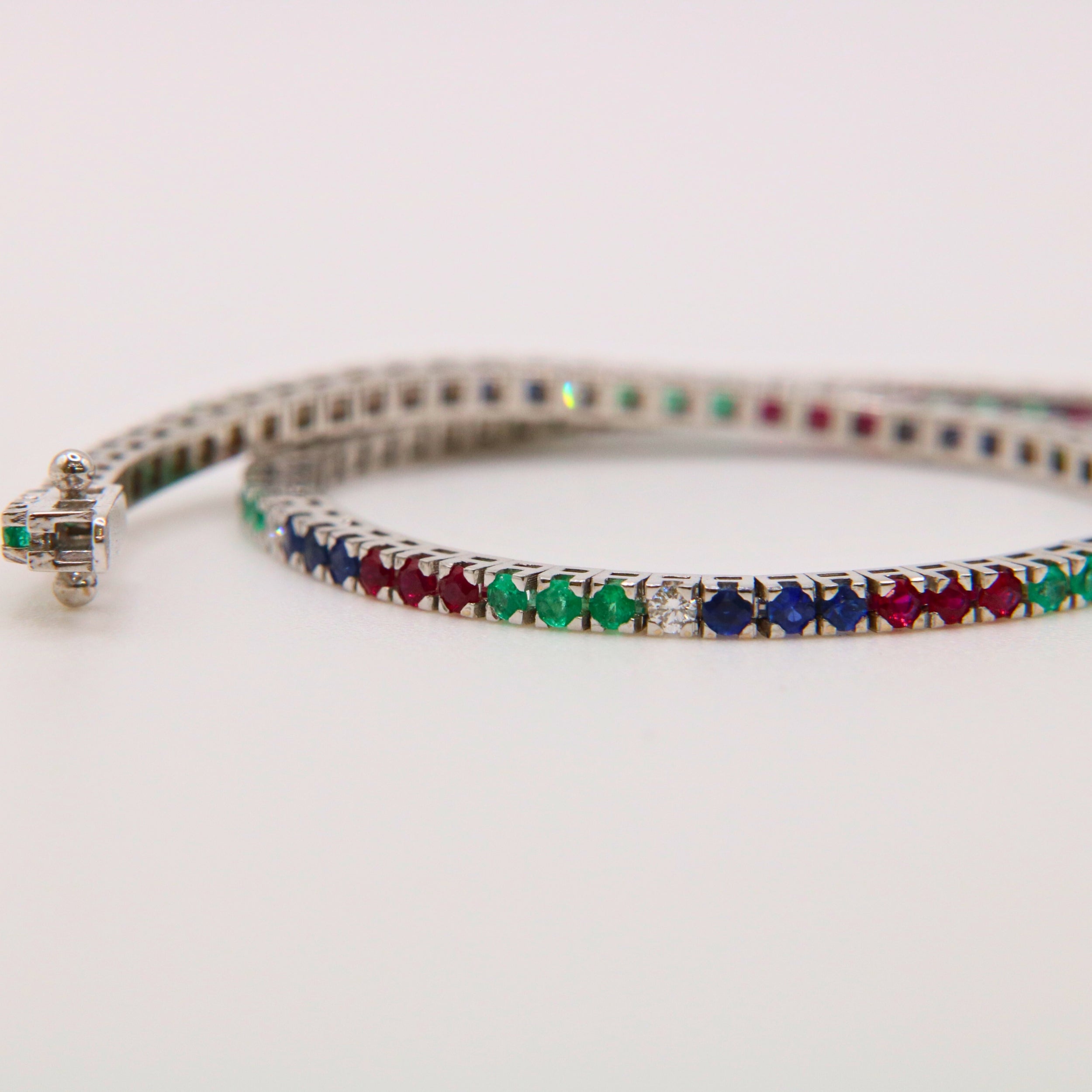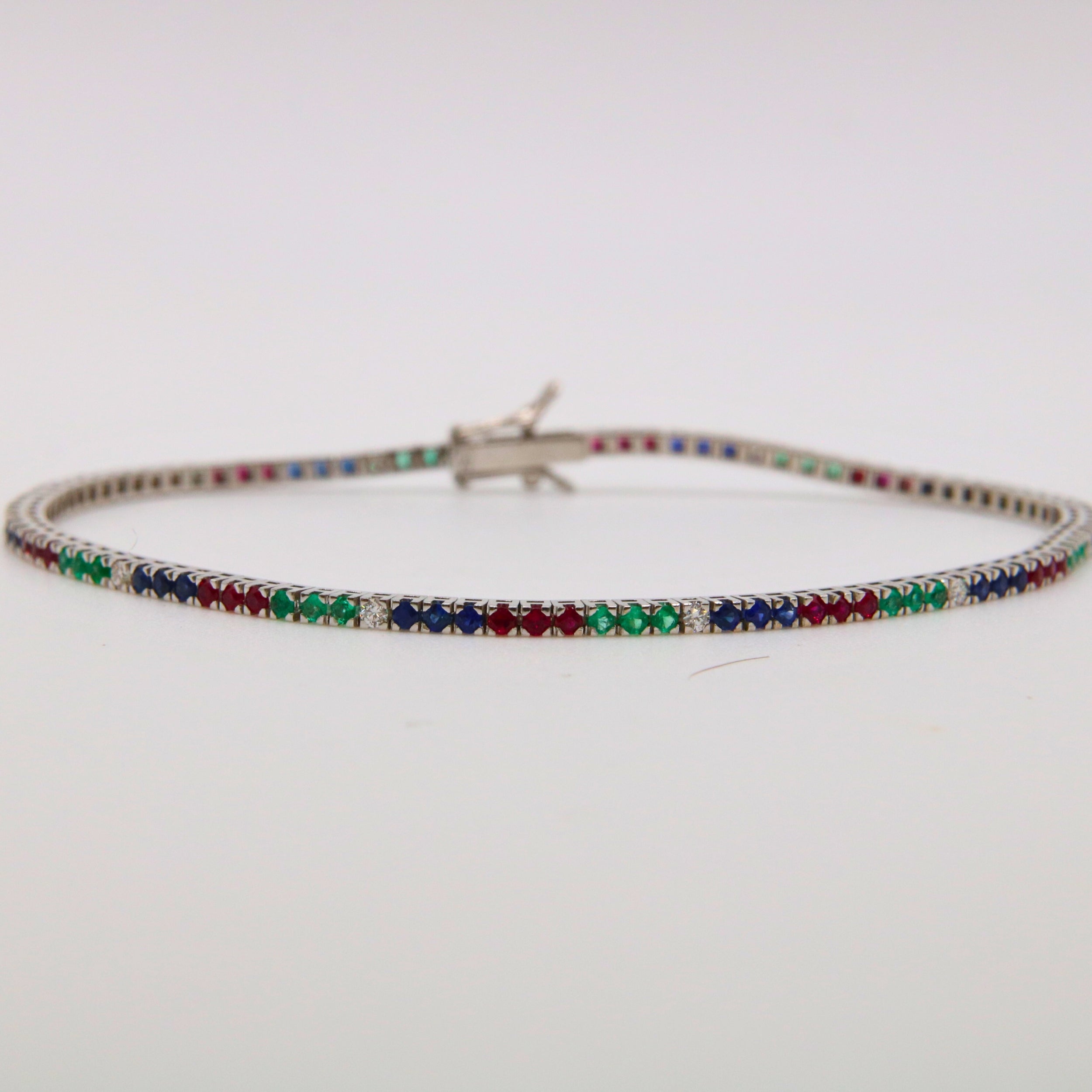 Bracciale Tennis Multicolor – Oro Bianco 18kt, 2,54ct – Certificato